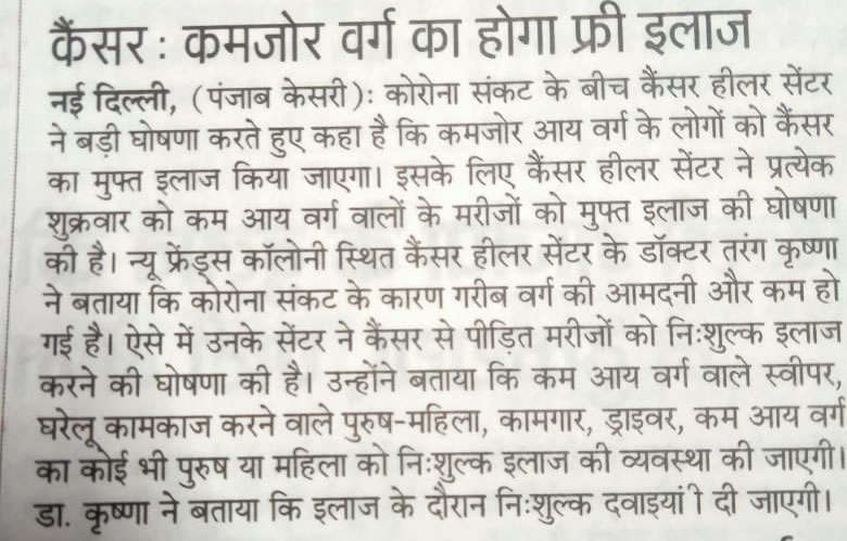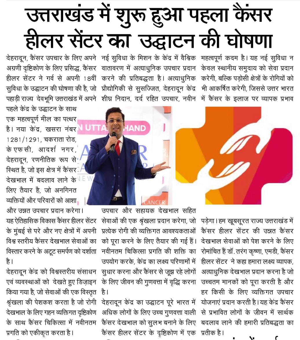 Announcement of inauguration of first cancer healer center started in Uttarakhand