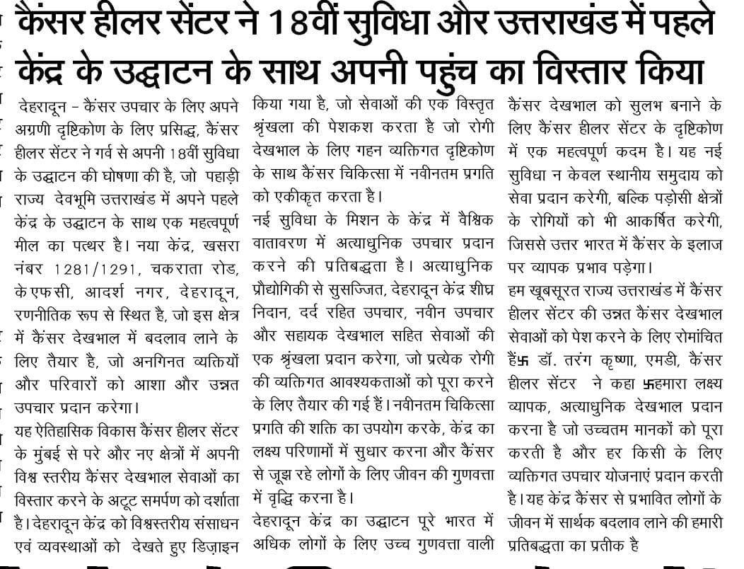 Cancer Healer Centre launches 18th facility and first centre in Uttarakhand